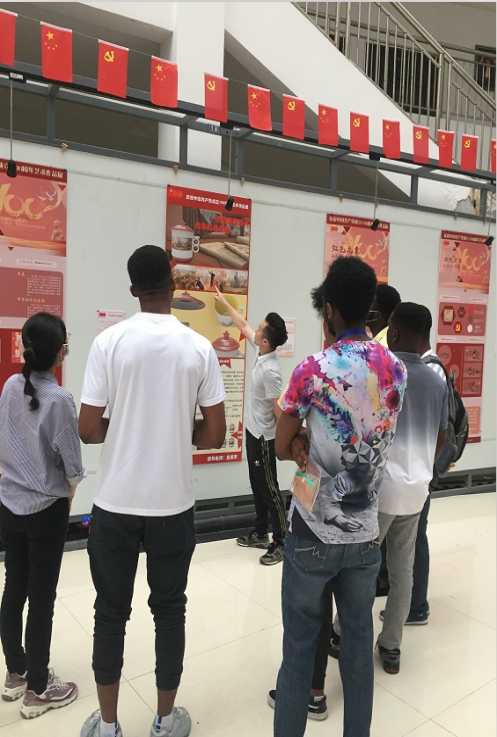 为隆重庆祝中国共产党成立100周年,近日,公司献礼建党100周年主题书画作品展在艺术大楼一楼展厅展出,为加强国际员工中国国情教育和文化交流,7月5日,伟德victor1946官网登录组织国际员工员工会干部参观了此次主题书画展。